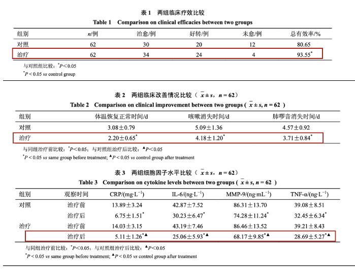 (数据来源:中国人民解放军第306医院李俊梅、郑成中团队《小儿肺热咳喘口服液联合奥司他韦治疗小儿病毒性肺炎的临床研究》)