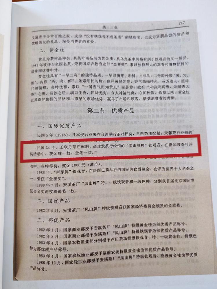 《安溪县志》中有关高建发茶行在新加坡获奖的记载
