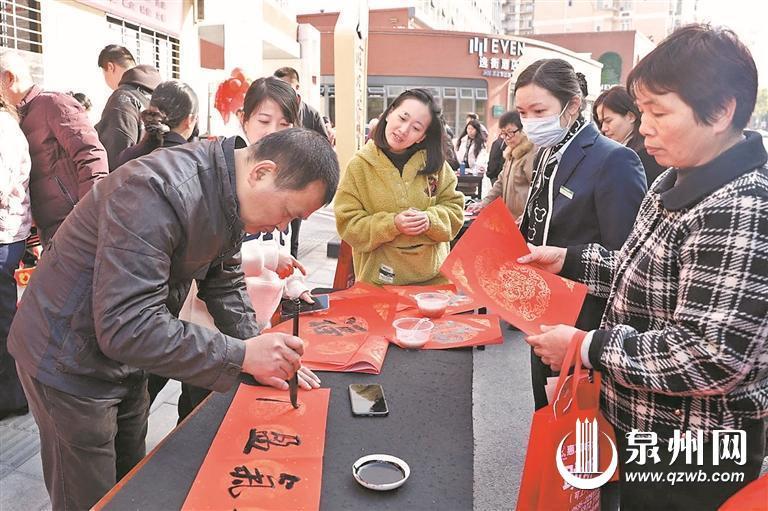 泉州网1月11日讯(融媒体记者龚翠玲 通讯员张婧滢 文/图)丰泽区于春节前夕开展以“翰墨飘香·清廉家风”为主题的“廉洁春联送万福 进万家”活动,营造文明祥和的过节氛围。1月7日上午,第一场活动在东湖街道铭湖社区正式拉开序幕。