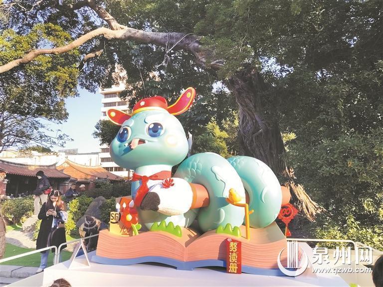 在学子期末备考之时,状元蛇“欢欢”在古代泉州的最高学府——泉州府文庙出场,向众人传达“𠢕读册”的好学之运,预祝各位学子可以考出好成绩。