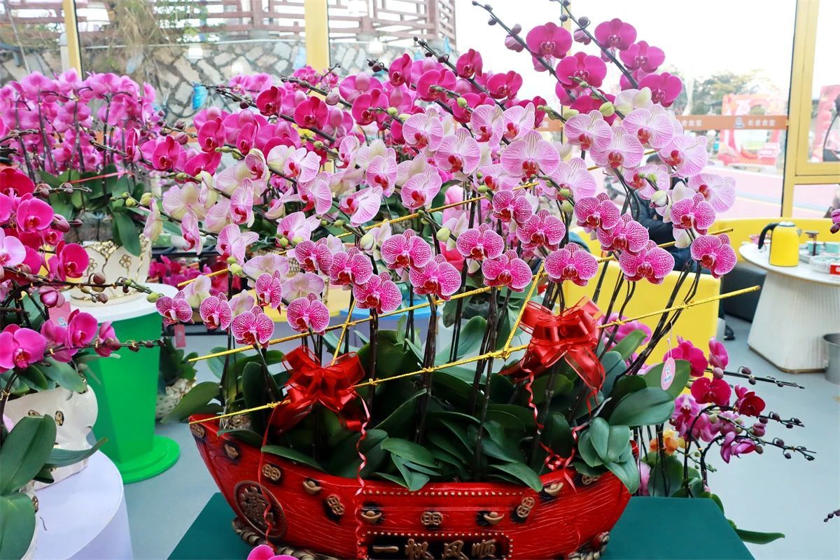 蝴蝶兰作为兰科花卉中的玉帛,花瓣大、颜值高,不仅因其花朵形似翩翩起舞的蝴蝶而得名,更因其适应性强、易于养护的特点,成为家庭年宵花和节日庆典的常用花卉。其吉祥、幸福的寓意也让蝴蝶兰成了年宵花中的“香饽饽”,深受消费者青睐。