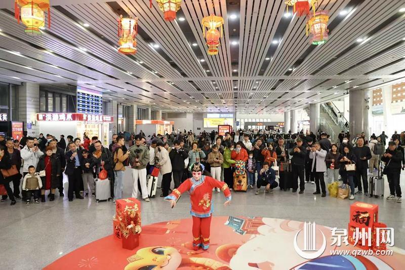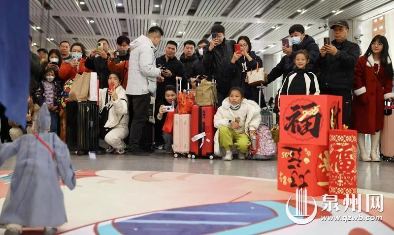 “旅客朋友们在乘车返乡的途中观赏非遗表演、体验非遗项目、感受非遗春节,给热闹繁忙的春运增添了一抹动人亮丽的色彩,走出了一条‘高铁+非遗’的文化传播道路。”泉州站站长李鹏程看着车站里其乐融融的热闹景象,在采访中说道,“春节临近,乘车返乡的旅客朋友也越来越多,我们也在进站口、安检处、服务台、售票区等关键位置,加派工作人员及青年志愿者,为返乡旅客提供问询解答、帮扶指引等服务,让返乡旅客时刻感受到这座世遗之城的温暖人情味。”