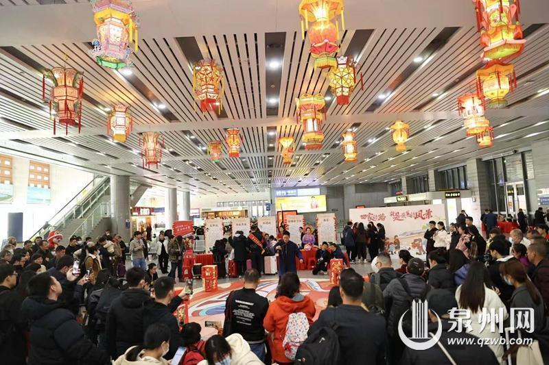 春运首日,泉州站人流如织,张灯结彩,候车室里挂满了泉州花灯。为了让旅客朋友能够在返乡途中感受“地道”的非遗春节、领略“出圈”的非遗之美,南铁漳州车务段在泉州站举办了“高铁喜逢非遗年 探寻海丝古韵美”主题活动,用满满的非遗年味和浓浓的非遗韵味,迎接即将到来的首个“非遗中国年”。