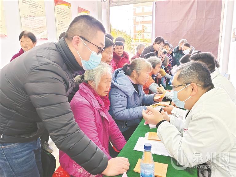 在上涌镇供电所一楼义诊现场,聚集着不少前来问诊的村民,华侨大学附属德化医院的医生们正在为村民提供诊疗服务。“大夫,我的膝关节酸疼好几个月了,能治吗?”面对群众的询问,医生耐心解答,并给出个性化的保健方案,现场开具药方、免费赠送药品。“我们准备了几十种常规药品,方便群众即诊即取,基本可以解决常见病种的一时之需。”苏医生说。