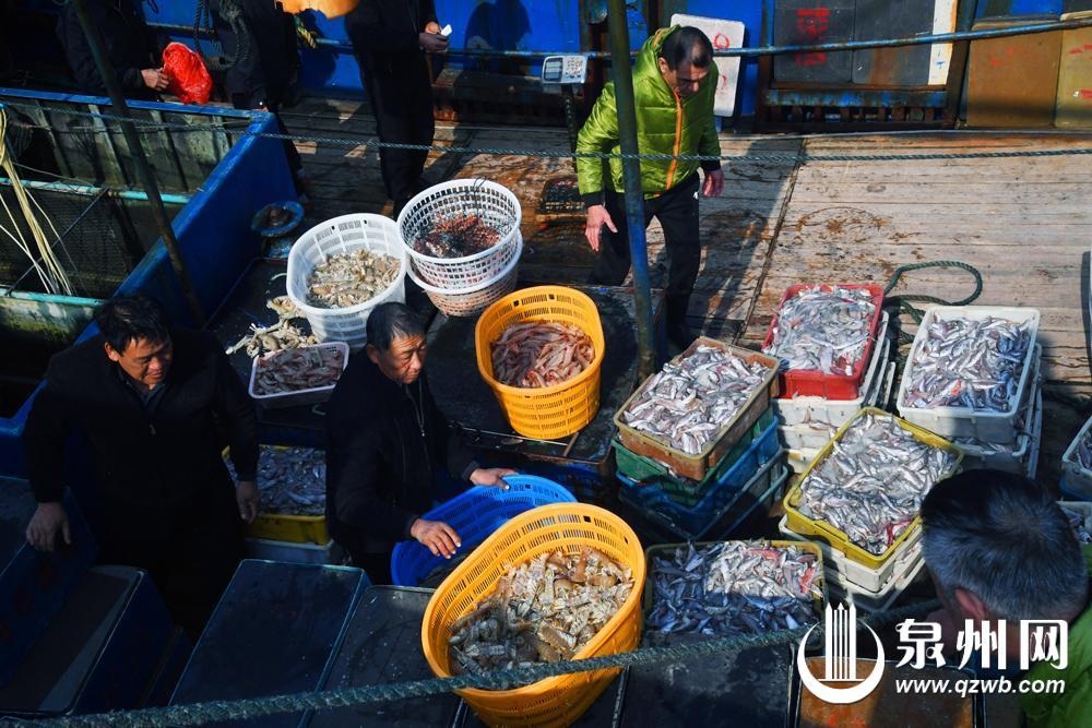 临近春节,海鲜的市场需求也越来越大。连日来,泉港区诚峰国家一级渔港码头,出海捕捞的渔船陆续回港,渔船扬帆出海带回大量海捕鲜货,码头上虾蟹、海鱼、生蚝等海鲜陆续上岸,商贩们穿梭其间,而繁多的种类和便宜的价格也吸引不少市民闻声而来,囤积过年的渔货。(融媒体记者陈晓东 通讯员 洪坤泽)