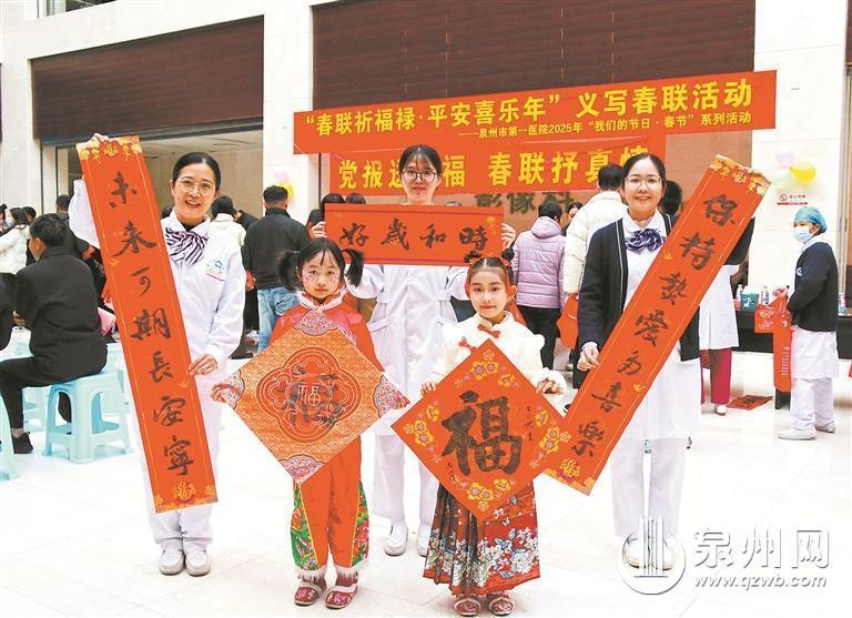 1月17日下午,2025年“党报送祝福 春联抒真情”第四场活动在泉州市第一医院城东院区举行。本场活动由泉州晚报社、泉州市第一医院主办,作为市第一医院2025年“我们的节日·春节”系列活动之一,活动以“春联祈福禄·平安喜乐年”为主题。