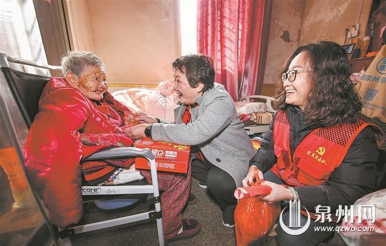 此次活动没有现场泼墨,而是进一步创新——泉州市委社会工作部、泉州晚报社联合多家单位和团队志愿者开展敬老爱老主题活动,深入社区为困难老人送春联的同时,送上慰问物资和新春祝福。