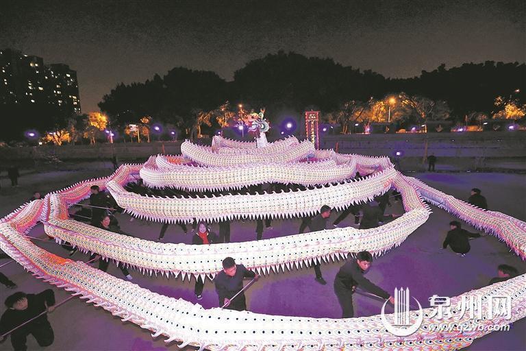 泉州网1月20日讯 (融媒体记者许小程 王耿华 通讯员林天真 杨少华 文/图)1月18日,晋江五店市国潮街区开街仪式在五店市洗马池路举行。仪式上,一条297米长夜光龙起舞,创下世界纪录,吉尼斯官方认证官现场进行授牌。