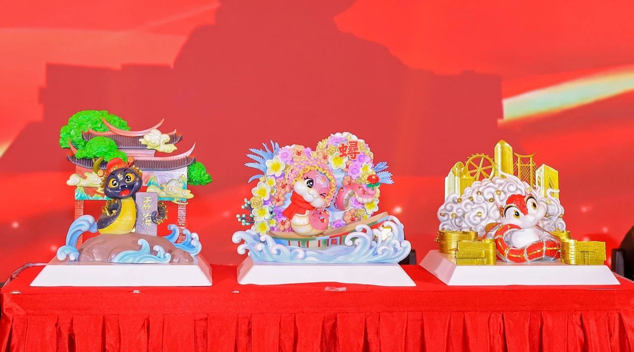 由丰泽国投集团与匹克集团联合打造的“三星献瑞,福泽年丰”蛇年IP艺术装置也于当天正式发布。代表在地文化符号的丰泽文创“SHE”IP——寿星“斌仔”、福星“蟳宝”、禄星“阿鑫”,分别蕴意着福寿平安安、好运钱多多、簪花福旺旺,将分别在南少林文武坊、泉州中央商务区、蟳埔村三个点位登场,与市民群众一同欢度“这YOUNG的丰泽 这YOUNG的好巳”。