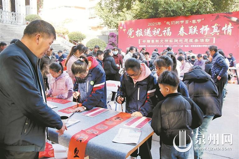 无联不成春,有联春更浓。昨日,由泉州晚报社、安溪县教育局主办的“党报送祝福 春联抒真情”活动在安溪县实验小学和安溪县逸夫实验小学同时举办。现场,师生同台挥毫泼墨,营造了喜庆祥和的节日氛围,为附近居民送上暖心的祝福。