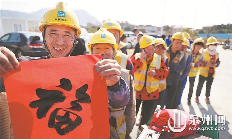 70岁的书法家方再添与党报送春联活动相伴已久,此次活动他第一个抵达现场义写春联。活动接近尾声,他才得空与记者闲聊。“这些工友们舍小家为大家,是他们的辛勤付出才让泉州这座城市日新月异,我打心底里感谢他们。”方再添说,希望借着这些春联,能把泉州的温暖和文化情韵传递到工友们的家乡,为他们送上浓浓的新春祝福。