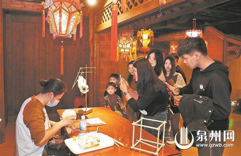 游客在泉州非遗馆体验花灯制作(陈小阳 摄)