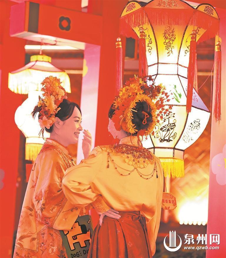 穿国潮服饰欣赏传统花灯,仿佛一眼千年。(泉州晚报资料图片)