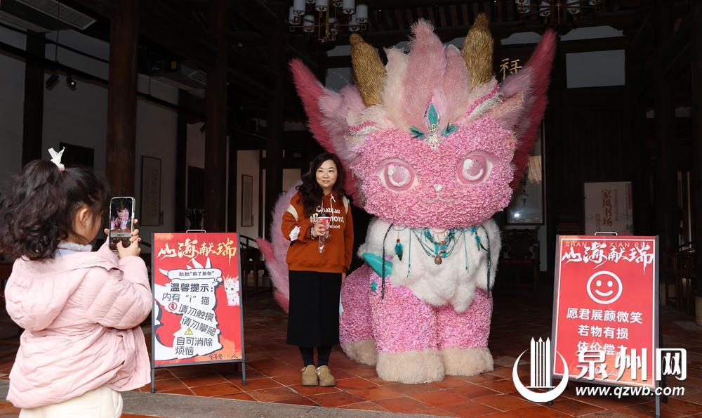 泉州网1月24日讯(融媒体记者许小程 庄丽祥 文/图)1月15日起,一系列以《山海经》为灵感来源的神兽艺术装置陆续在五店市亮相,吸引了众多市民和游客前来打卡,也为晋江增添了浓厚的文化氛围。此次亮相的山海经神兽艺术装置共有七个,它们分别是“走马灯”“胐胐”“白虎”“麒麟”“乘黄”“貔貅”和“女娲”。