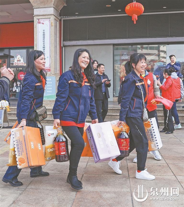 泉州网1月25日讯 (融媒体记者陈明华 许奕梅 庄丽祥 高云 陈茗香 文/图)1月24日,“暖冬行动”慰问环卫工人志愿服务活动在泉州商城志愿服务驿站举行。爱心单位、爱心人士给50名环卫工人送上米、油、面包等新春大礼包和新年祝福,向坚守岗位的“城市美容师”们表达诚挚的敬意和关怀。