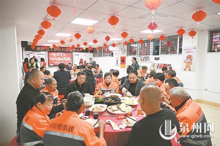 泉州网1月27日讯 (融媒体记者龚翠玲 通讯员王子凡 文/图)春节临近,由泉州市总工会、鲤城区总工会联合举办的“‘我们是一家人’与环卫工同吃年夜饭活动”热闹开席,来自基层一线的环卫工人们齐聚一堂,同享工会“娘家人”精心准备的暖心团圆宴。