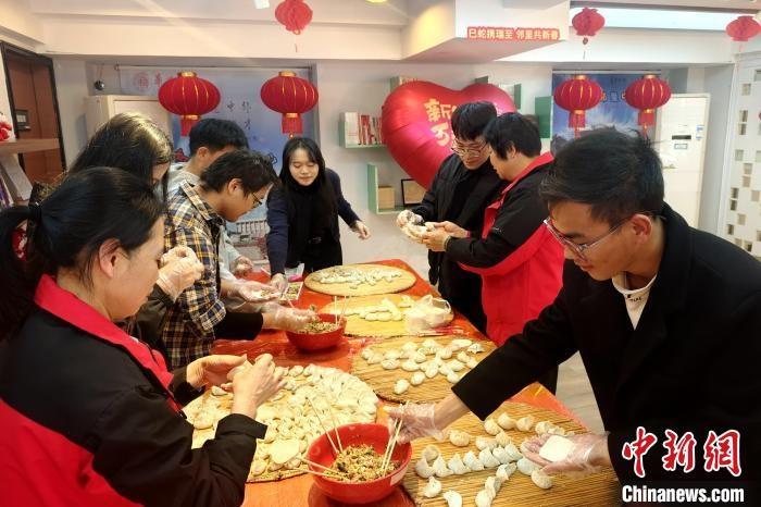 1月27日,华侨大学留校过年的学生一起包饺子,感受浓浓的节日氛围。(华侨大学供图)