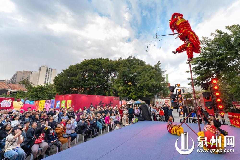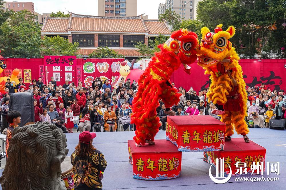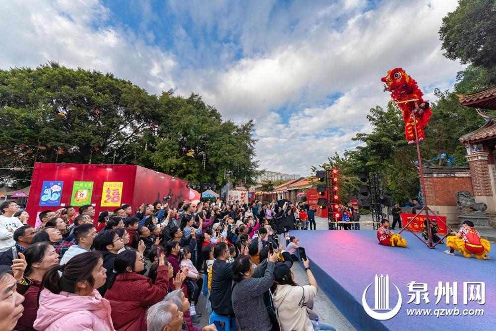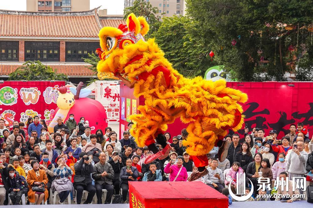 1月31日,2025年丰泽区真武非遗游园会举行,活动包括非遗展演、艺术展览、花灯打卡和艺术市集等。图为舞狮表演。(融媒体记者陈起拓 摄)