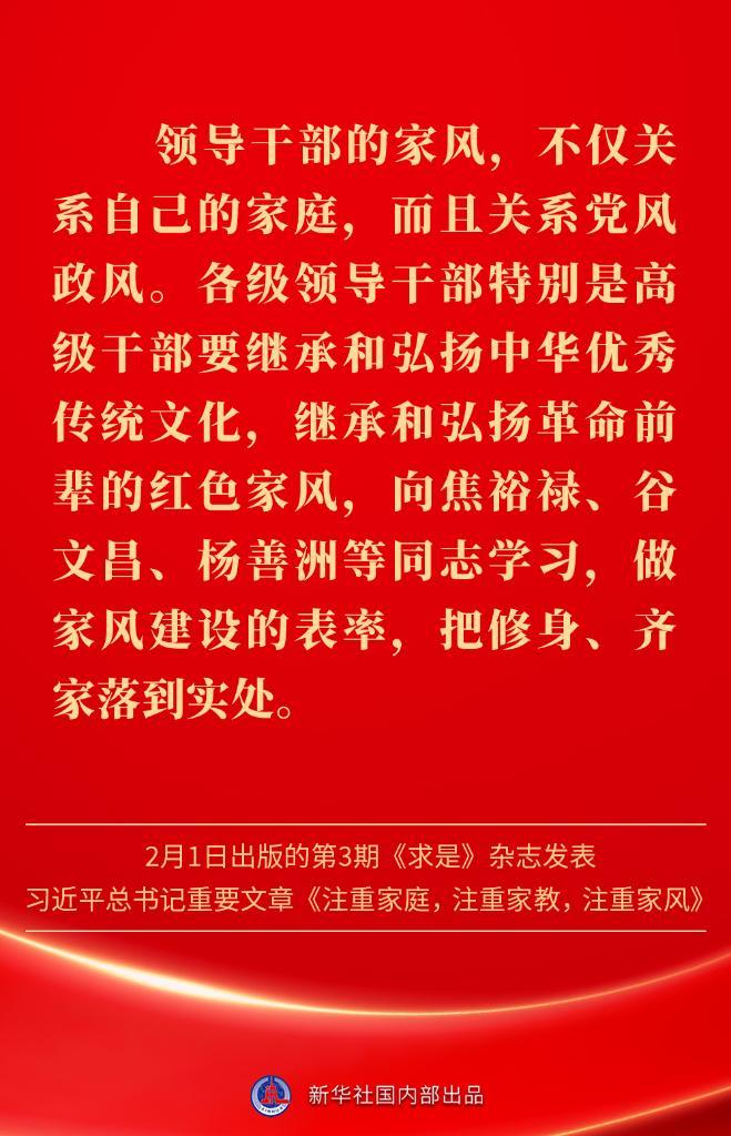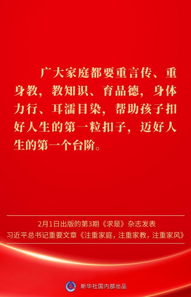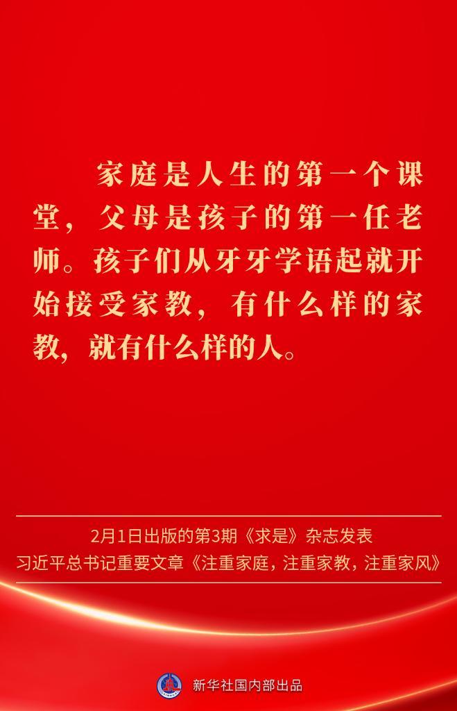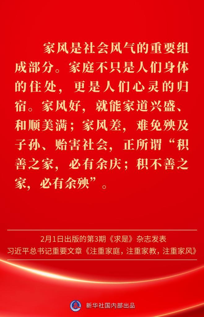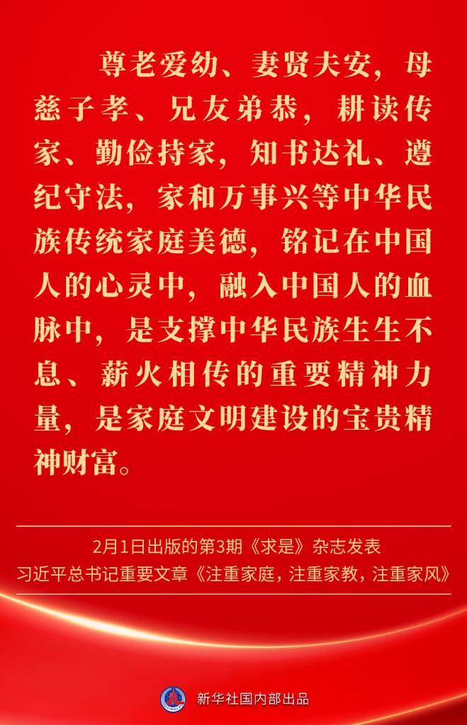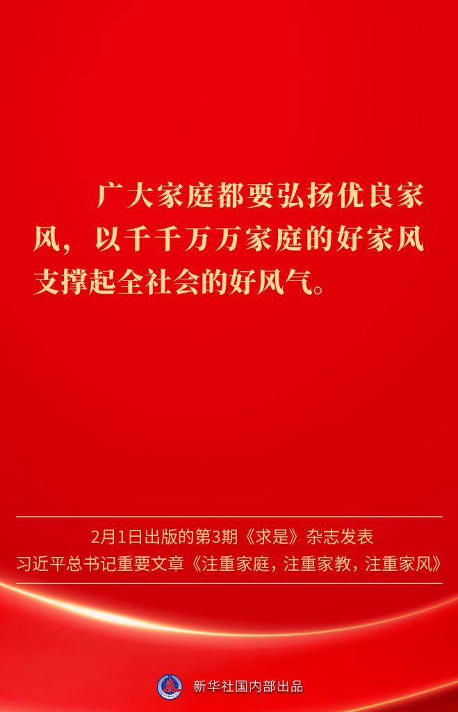万家团圆共庆新春佳节之际,2月1日出版的第3期《求是》杂志发表习近平总书记重要文章《注重家庭,注重家教,注重家风》。为什么要注重家庭、家教、家风?如何做好家庭文明建设?习近平总书记这样阐述——