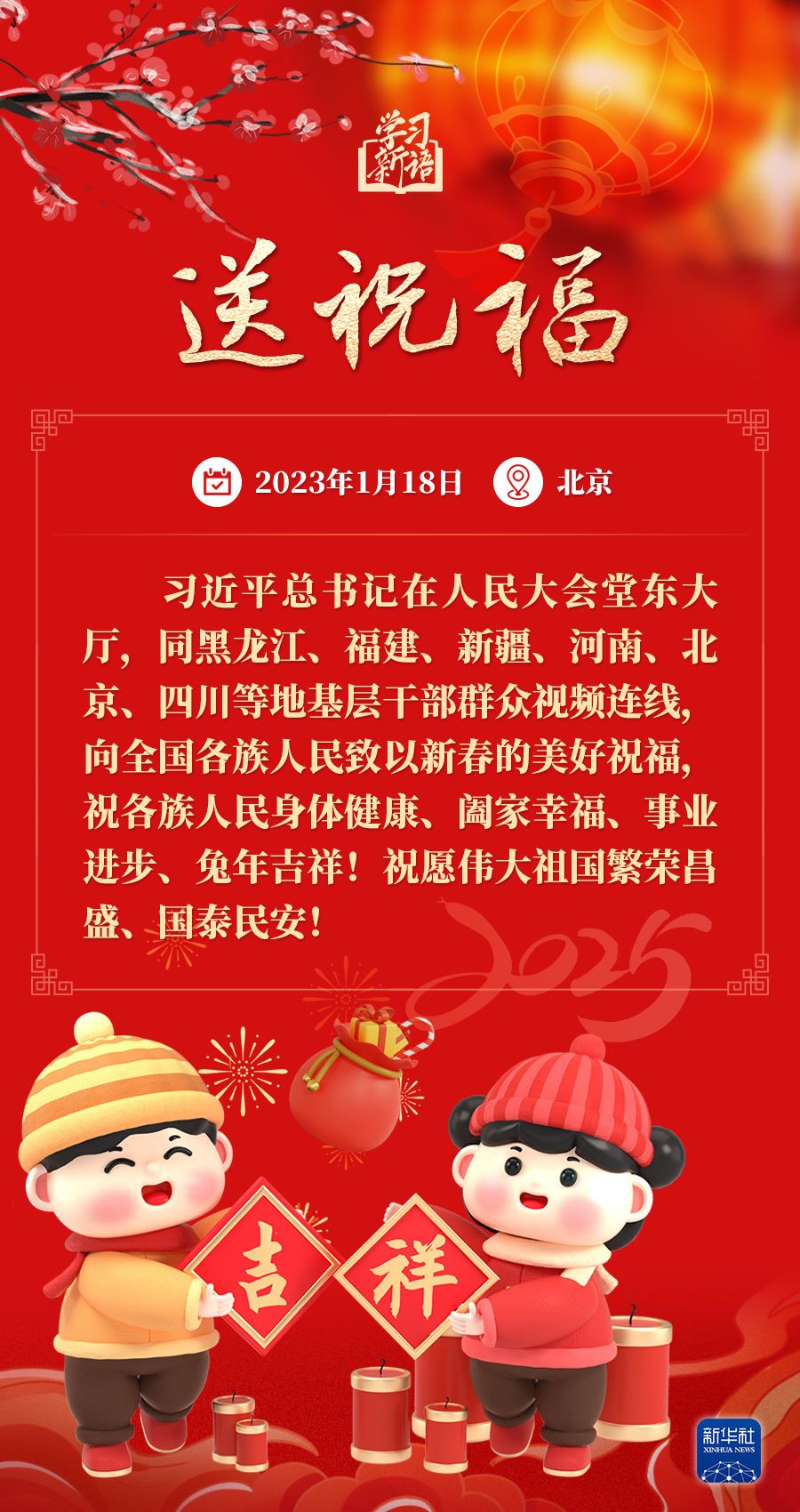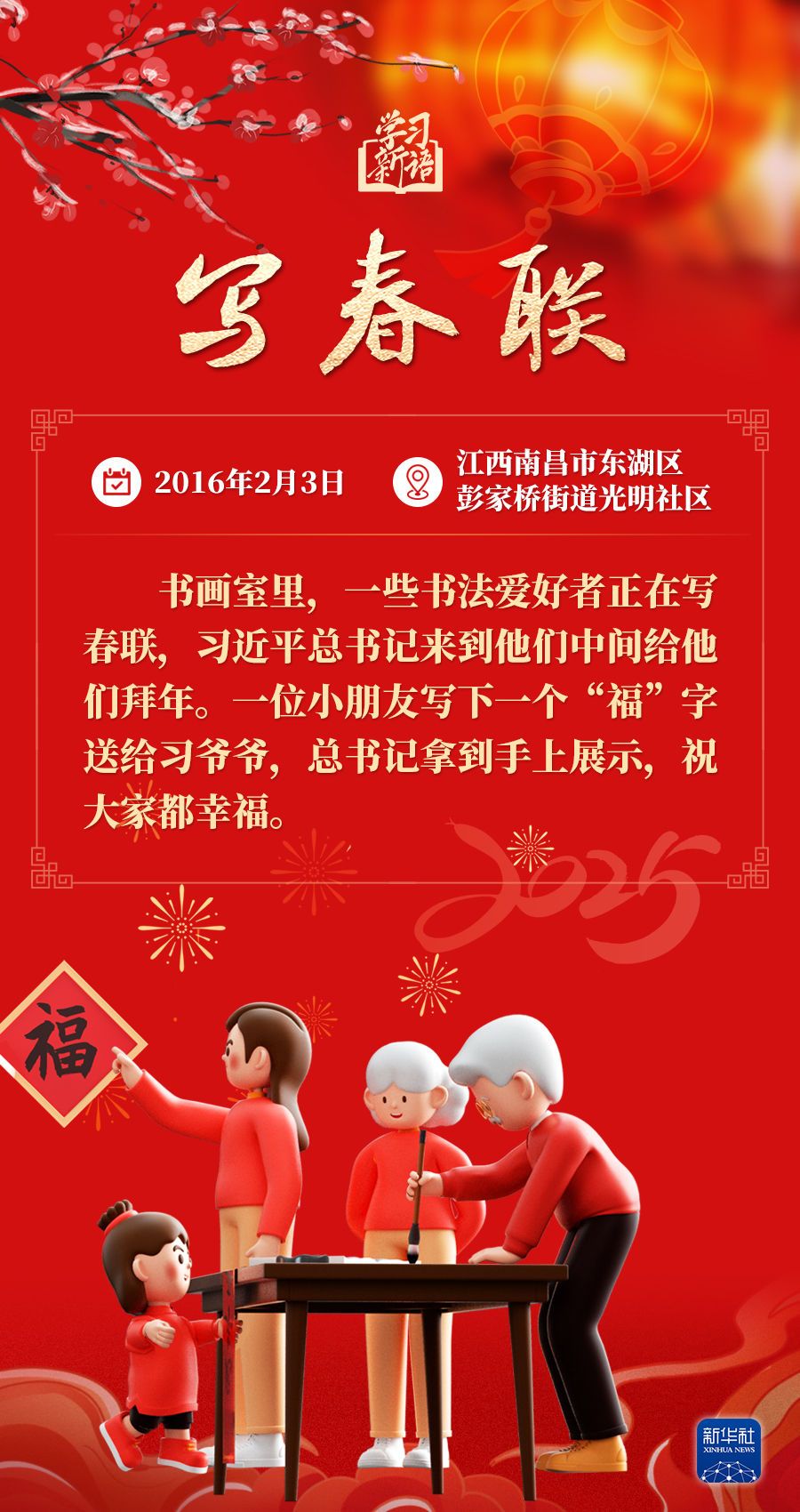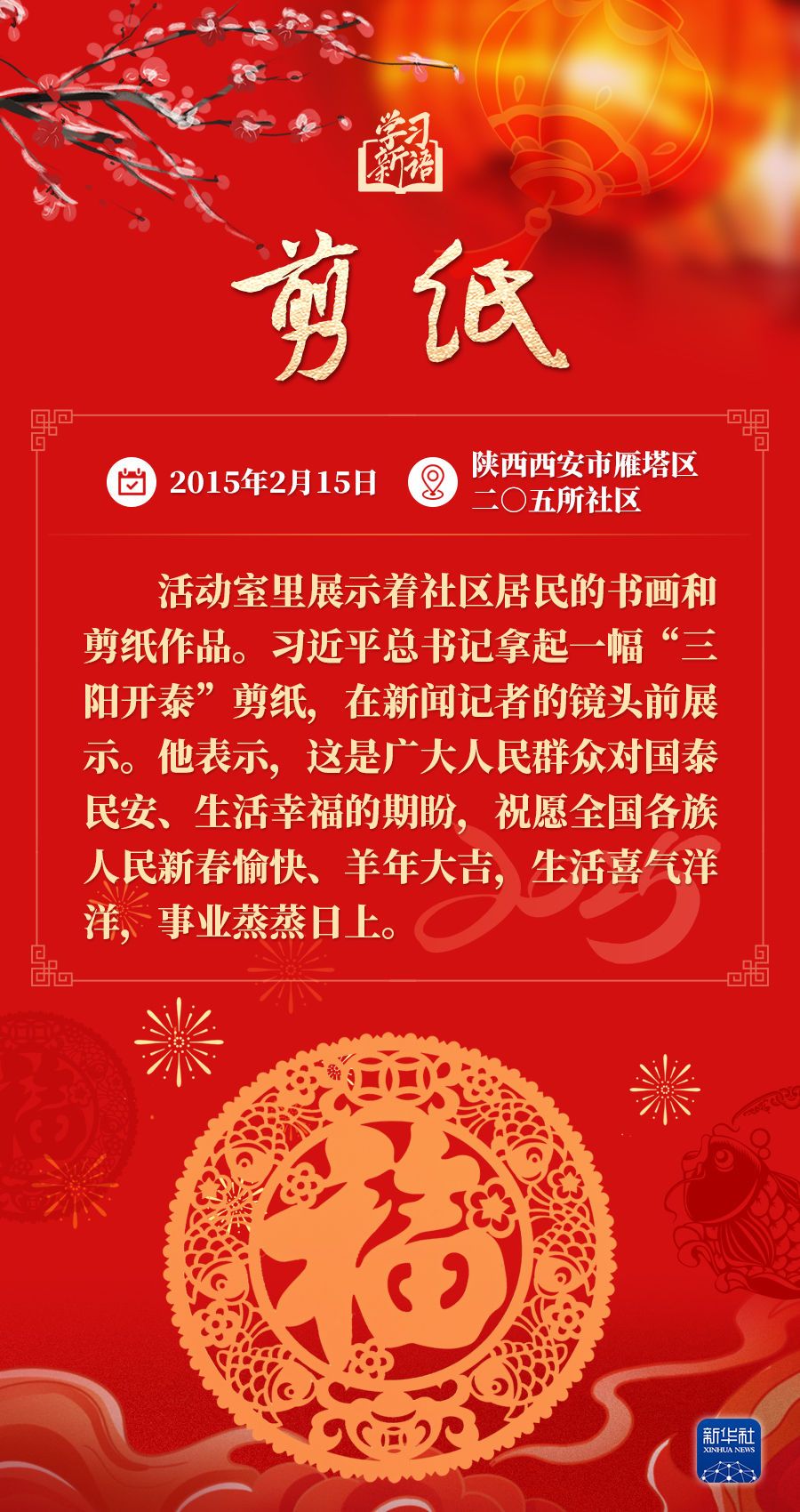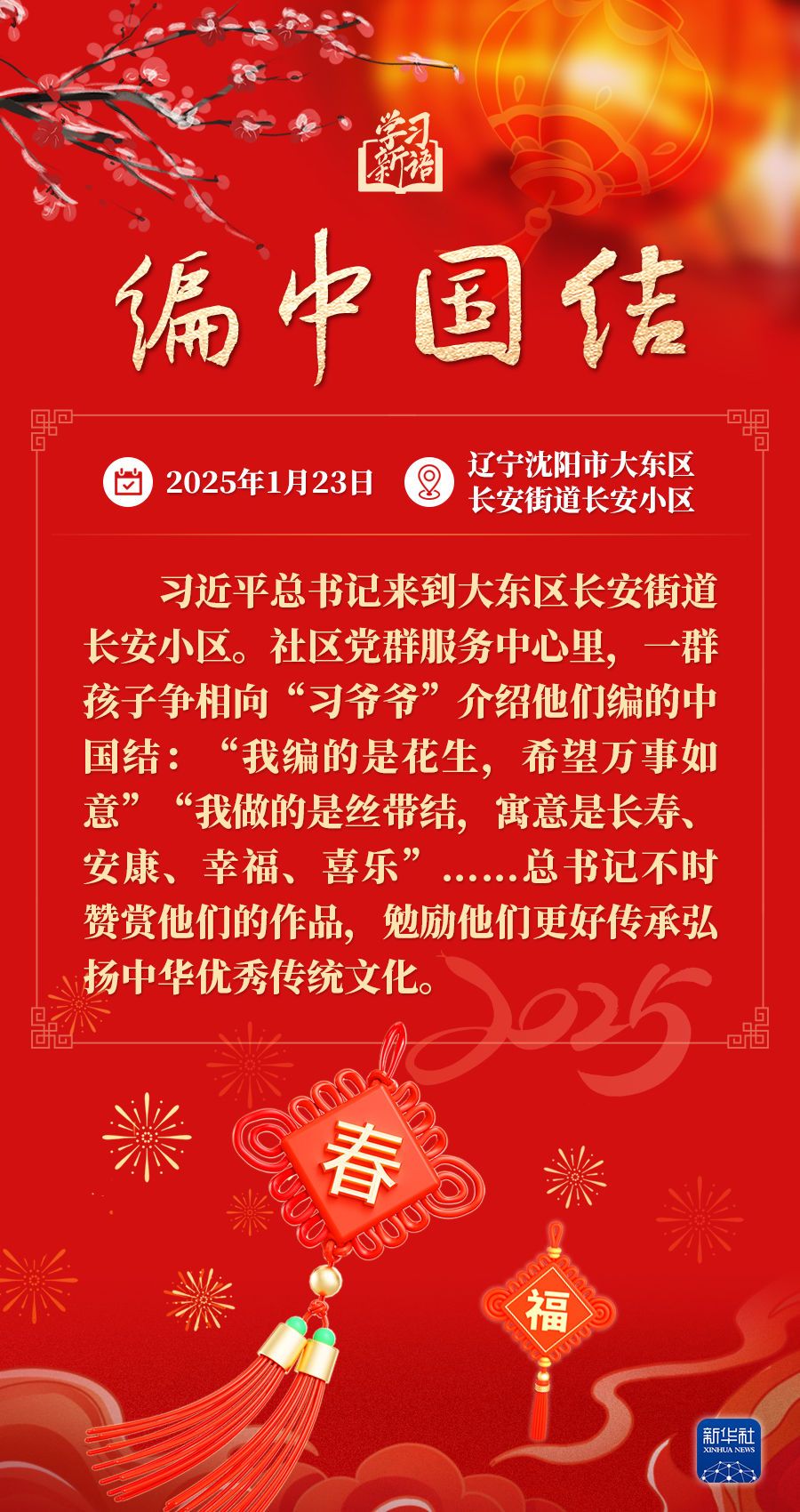 春节是中华民族的传统节日。每当春节来临之际,习近平总书记都会走到群众之中,送祝福、贴“福”字、赏民俗……和大家一起感受丰富多彩的年俗文化。