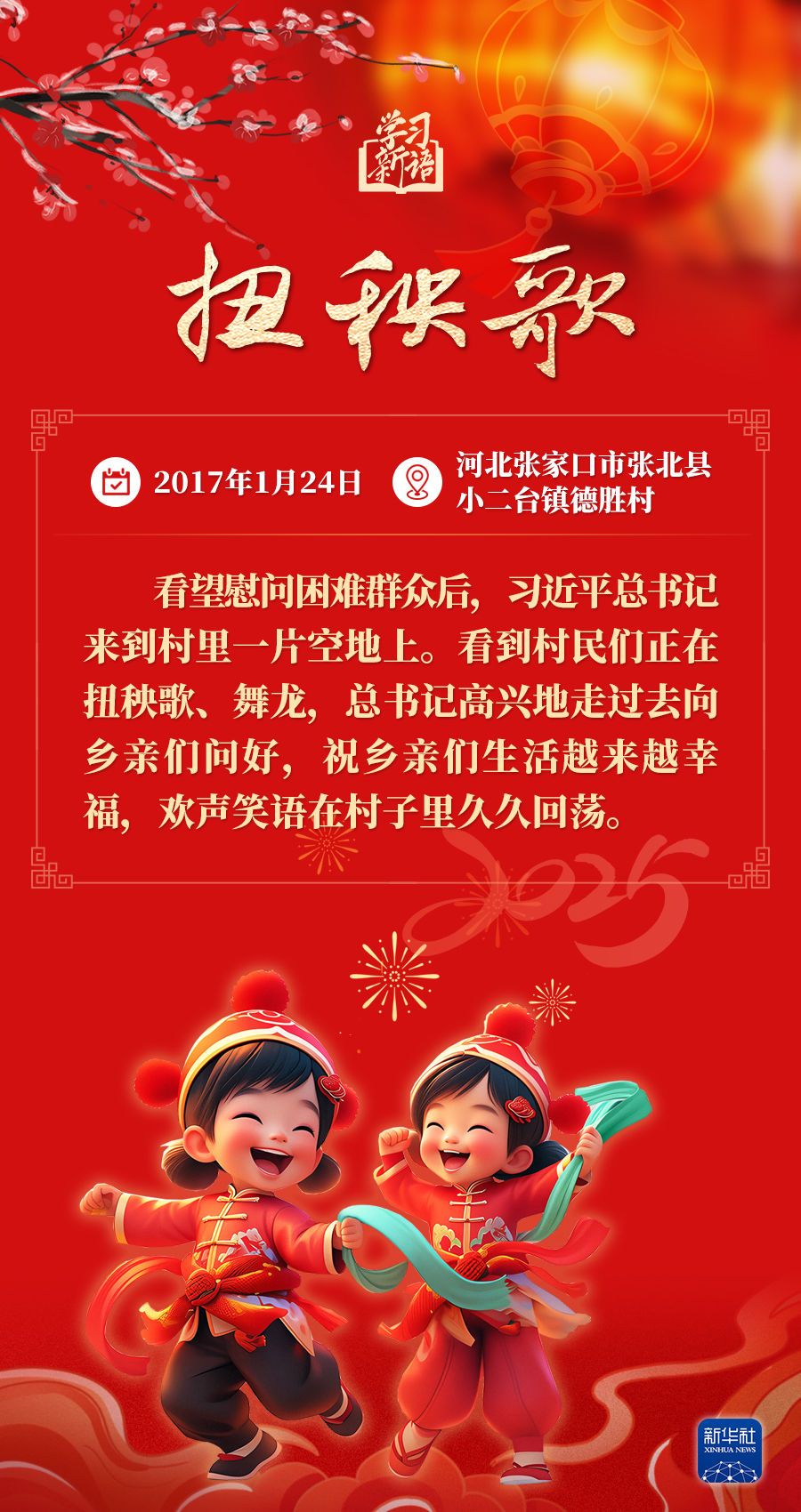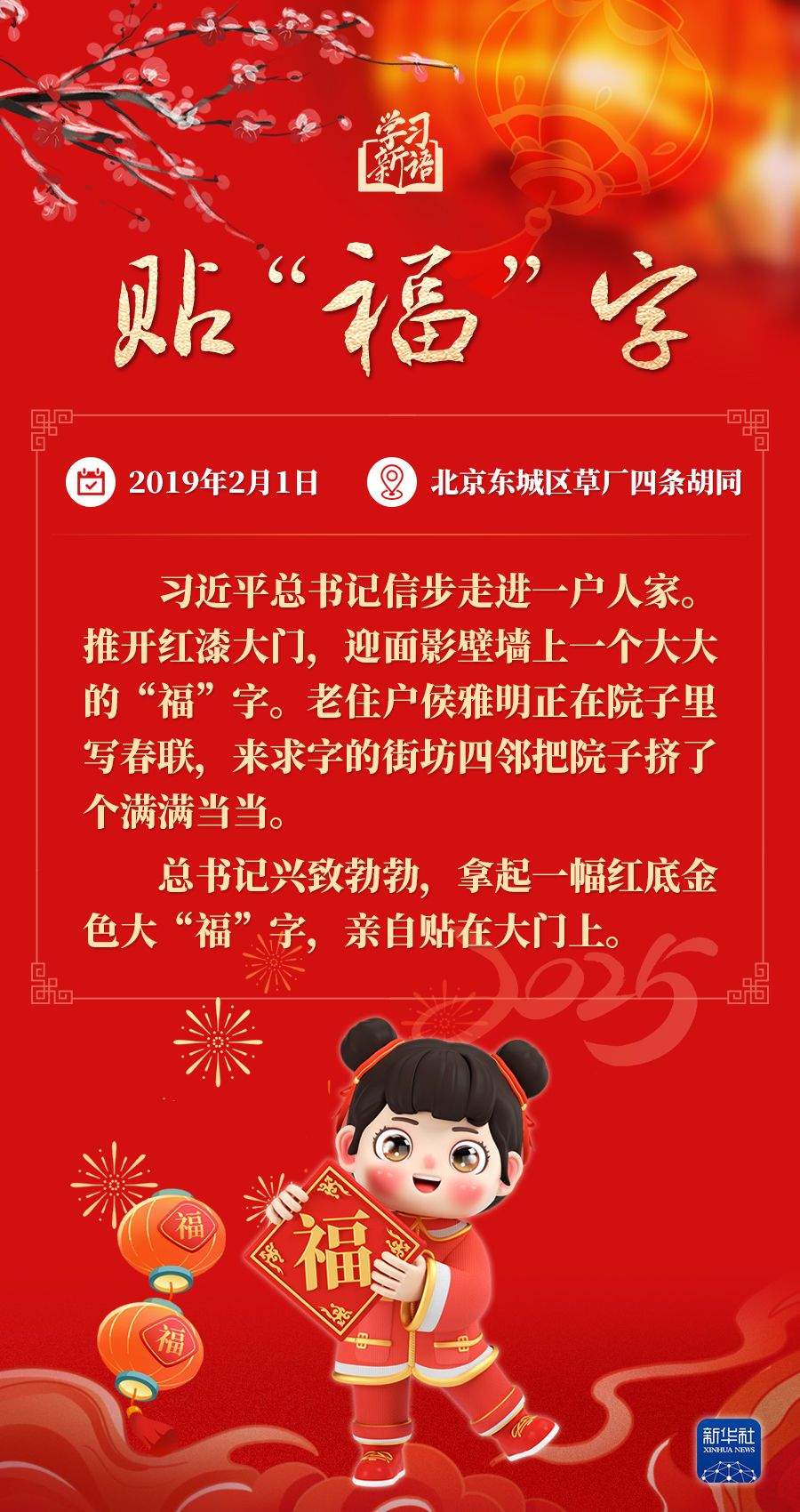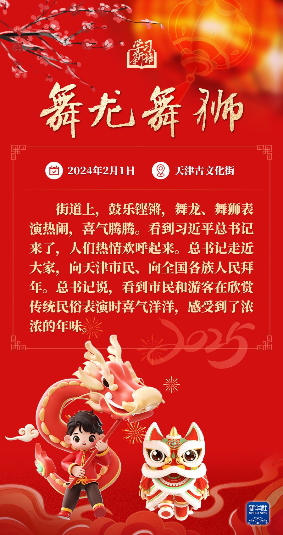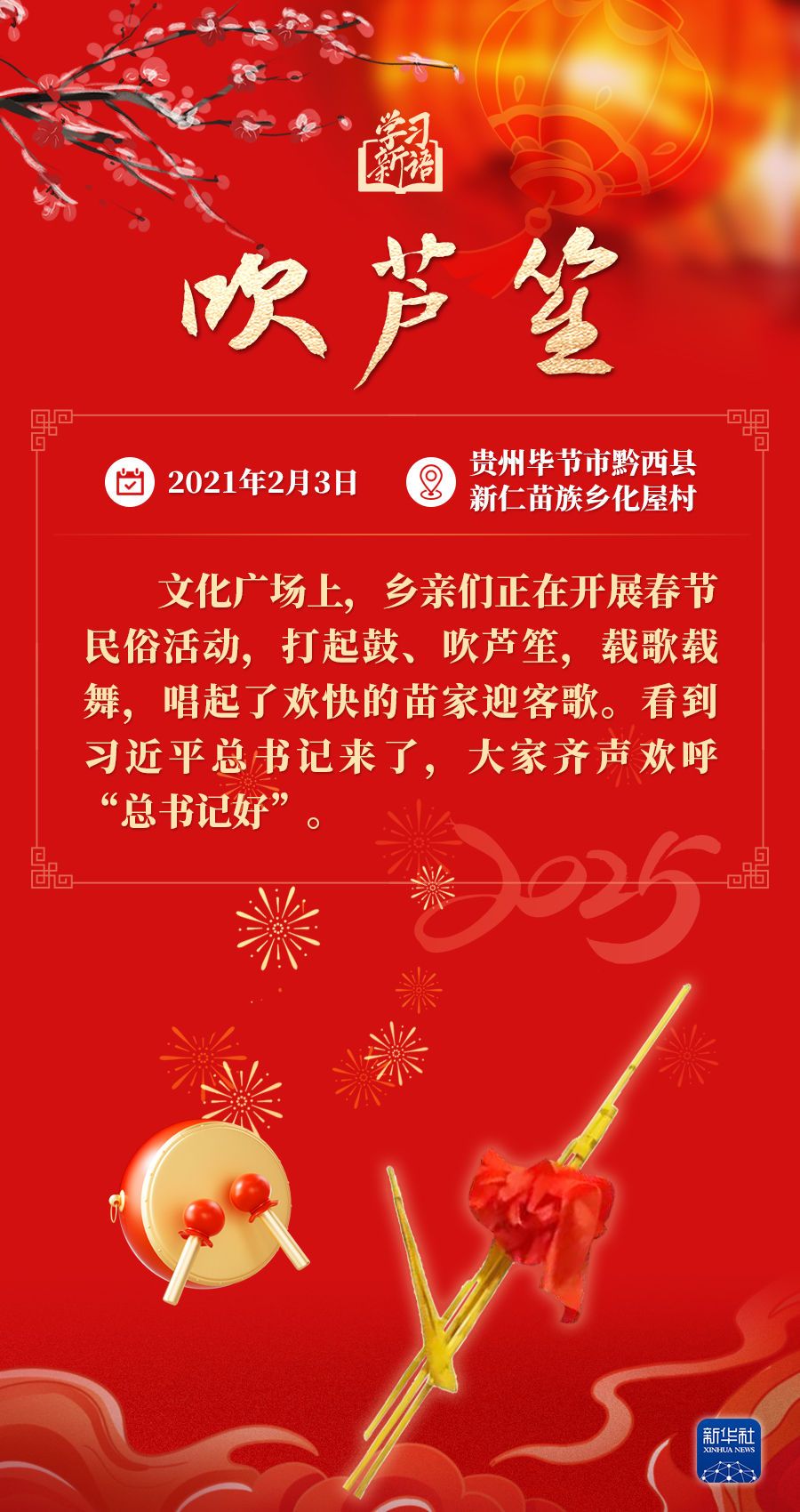 春节是中华民族的传统节日。每当春节来临之际,习近平总书记都会走到群众之中,送祝福、贴“福”字、赏民俗……和大家一起感受丰富多彩的年俗文化。