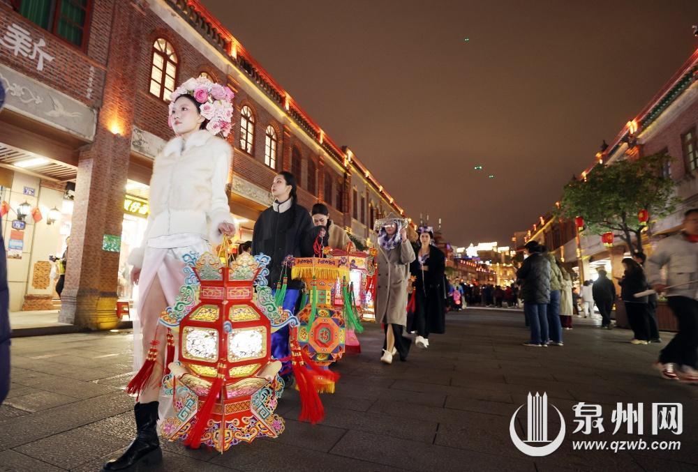 2月3日晚,泉州府文庙前广场热闹非凡,“穿越宋元奇妙游”世遗泉州非遗时尚秀惊艳上演。活动通过“万国商埠”“万般生活”“万家灯火”三个篇章庆祝“春节”申遗成功、致敬非遗和非遗代表性传承人,融合世遗、非遗、时尚、秀场四大元素,以南琶为舞蹈造型,让非遗在艺术音乐的琴弦上流动,生动展现南音、南戏、南建筑、南拳、南派工艺、南风俗等非遗技艺之美、匠心之美,为现场观众带来了一场穿越古今的文化盛宴。