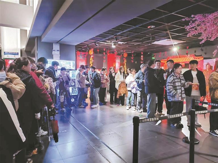 春节档电影市场被称为全年经济“晴雨表”之一。今年春节,泉州市电影市场热闹非凡,市区不少影院黄金档时段出现了一票难求的情形。业内人士表示,《哪吒之魔童闹海》《唐探1900》等好电影扎堆上映,再加上观众强烈的观影需求,成就了一个充满活力和潜力的电影档期,也折射出文化消费市场的热气腾腾和活力满满。据网络平台数据,截至2月3日9时5分,2025年春节档期电影总票房(含预售)突破75亿,再创新高。图为春节期间,在市区一影院,观众排队观影情形。(融媒体记者陈云青 文/图)