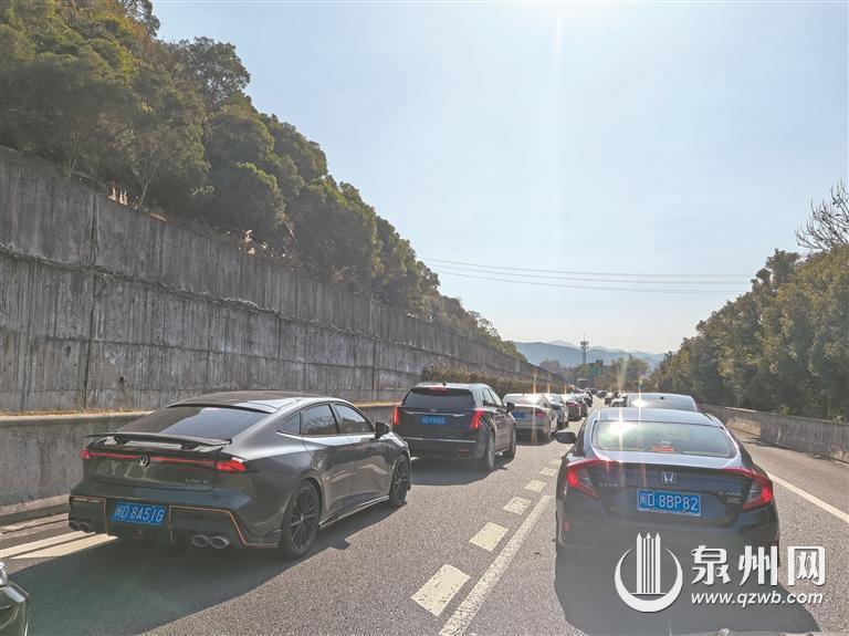 14时30分,记者驱车经过沙厦高速安溪清水岩路段,道路出现两三公里长的车龙,道路拥堵因出现追尾事故所致。17时许,沈海高速公路往厦门方向车流量大,驿坂路段通行缓慢。20时许,泉南高速观音山隧道车流量巨大,出现3.5公里缓行车流。据介绍,近三日交通流量均处于高位运行状态。