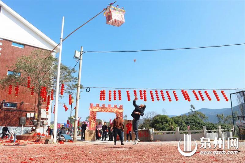 泉州网2月7日讯(融媒体记者龚翠玲 柯丽娟 通讯员郭晓玲 文/图)正月初二,非遗“攻炮城”在洛江区马甲镇永安村精彩上演。十米高的“炮城”高高竖起,一个个炮手持“鞭炮”对准炮城抛掷,谁能幸运将鞭炮扔进炮城,以鞭炮喷出的火花引爆“炮城”内的鞭炮,即为胜者,可获得丰厚的奖励。“哇!快看,我投中了!”“我们赢了!”成功命中时,鞭炮和“炮城”都会腾起阵阵白烟,随之一起升腾的还有现场的掌声与欢呼声,气氛异常热烈。