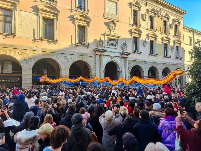 意大利北部城市帕多瓦庆祝中国新年活动现场,蟳埔元素成为吸睛元素。