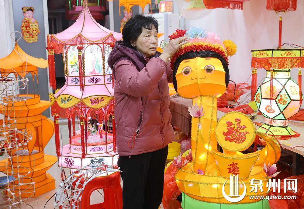 元宵将至,位于泉州古城区水门巷的曹淑贞花灯艺坊一片繁忙景象。省级非遗代表性传承人曹淑贞正在赶制以“蛇”为主题的蛇年花灯,创作中还融入泉州簪花元素,花灯造型可爱又有趣,寓意蛇年大吉,“巳巳”如意。 (融媒体记者王柏峰 摄影报道)