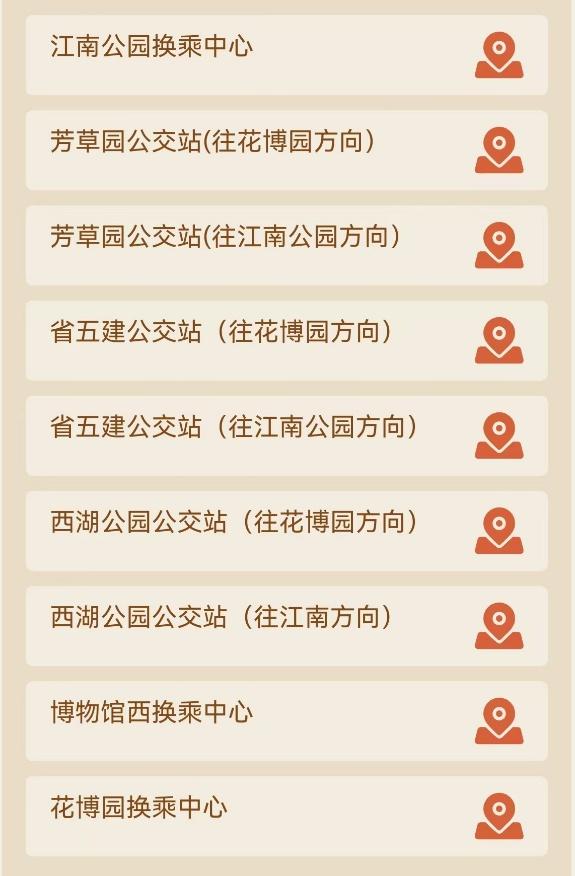 花博园定制A线运营路线往(返):花博园游客集散中心﹣茂福路﹣F1辅道﹣环清路﹣北清路(闽台缘博物馆)﹣新华北路(博物馆西换乘中心、邮电公寓<西湖公园> 、省五建)-新华南路(芳草园)﹣江滨北路﹣田安大桥﹣江滨南路﹣江南公园换乘中心