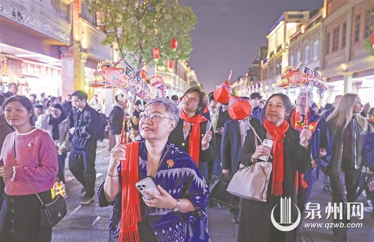 千灯共舞迎元宵,夜晚的泉州古城热闹非凡。以花巷巨型走马灯为起点,串联傅宅广场、泉州市工艺美术厂、许厝埕口袋公园,打造出特色主题花灯展区,再现了宋元时期泉州古城的元宵盛景。总领事们漫步中山路,穿越古城街巷,欣赏特色花灯,了解花灯制作技巧。新加坡驻厦门总领事庄志嘉说:“泉州的花灯巧夺天工,眼花缭乱,让我印象很深刻。在新加坡,元宵节一般被称作‘十五暝’,就是来源于闽南语的发音。这次来泉州希望可以系统地了解泉州文化,促进新加坡与泉州之间的紧密交流。”