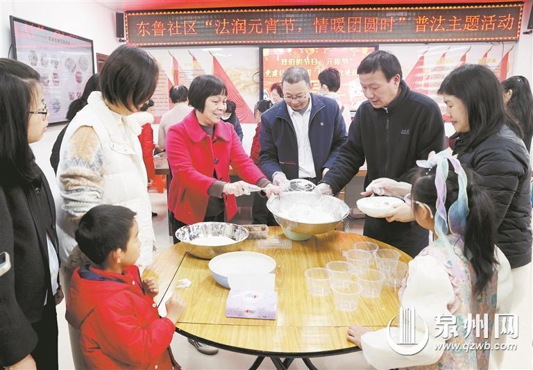 福行天下,情满元宵。2月11日,以“党建引领同心圆 红色文化进社区”为主题的庆元宵活动在鲤城区海滨街道东鲁社区举行,主办单位组织党员干部和社区居民一起,在传统习俗与红色文化深度结合的氛围中欢喜过节。