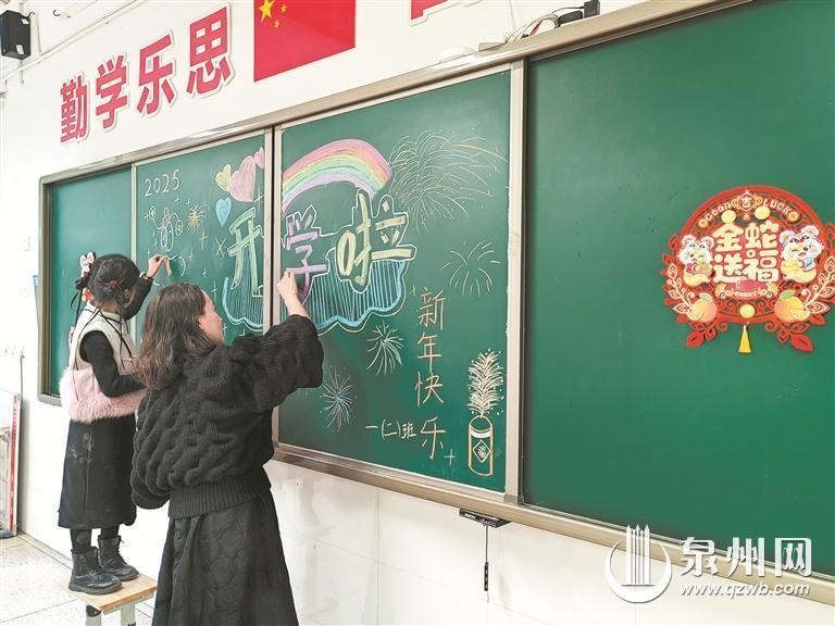 鲤城区东门实验小学的教室窗明几净,黑板已绘满“开学啦”主题画,课桌整齐摆放着新书本,承载师长的殷切期望。老师们正精心设计“开学第一课”内容,部分班级还设置了“蛇年祝福墙”,将蛇年元素与新学期的期待巧妙融合,鼓励学生写下成长计划,以崭新姿态迎接挑战,给同学们营造一个温馨、充满仪式感的环境,让孩子们带着满满的欢喜与期待开启新的学习旅程。而为了保障新学期教材及时到位,日前,丰泽区实验小学的老师们提前到校,开展清点整理教材、寒假作品展示布置等工作,营造出喜迎新学期的浓厚氛围,为上好开学第一课做好准备。