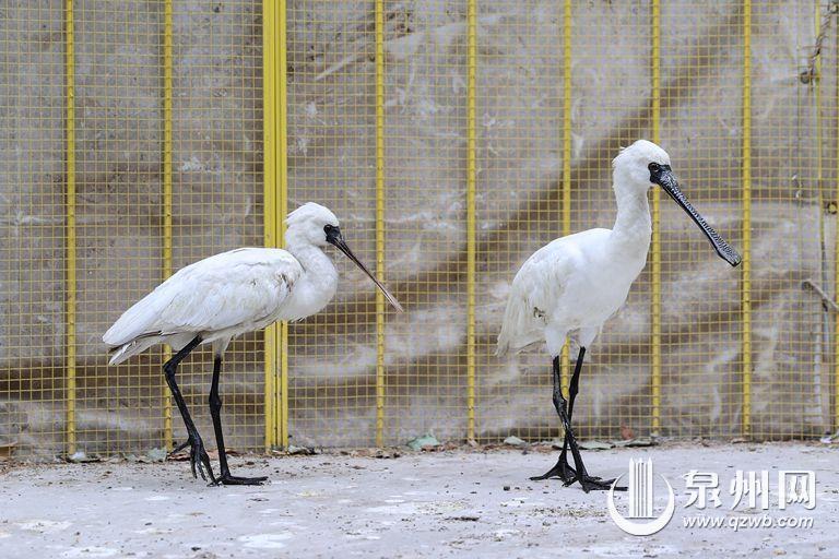 泉州网2月13日(融媒体记者 许钹钹 王耿华 文/图)两三米高的巨大鸟笼里,两只黑脸琵鹭正悠然踱步,它们的体力正在逐渐恢复。这两只国家一级保护野生动物此前因误入民宅、不慎受伤被送至晋江市林业和园林绿化局下辖的野生动植物收容救护中心(以下简称“救护中心”)。待它们体力完全恢复后,专业人士将为其佩戴卫星定位追踪器,观察无恙后将进行放生。