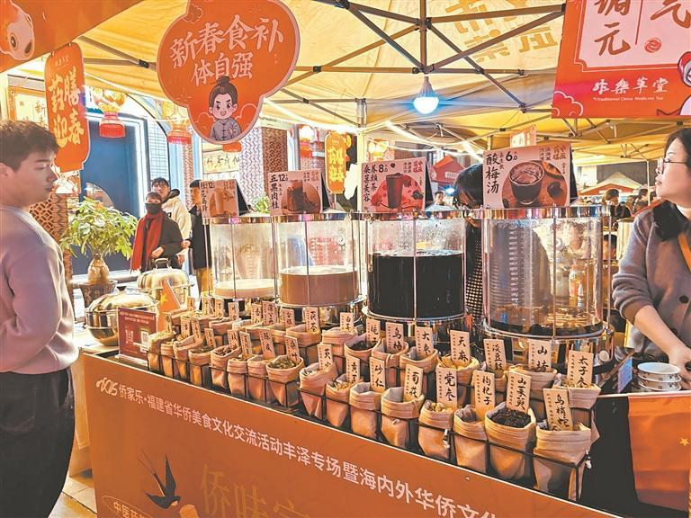 近日,“侨家乐·福建省华侨美食文化交流活动”在丰泽区南少林文武坊举办。其中的药膳康养专区呈现药膳料理、中药茶饮等特色内容,美味与康养兼具。