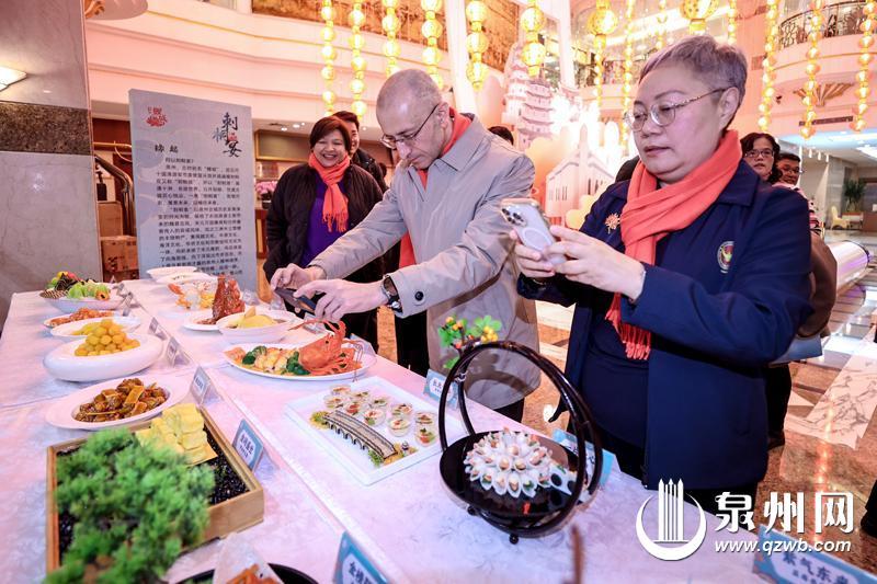 当天傍晚,总领事们在泉州酒店体验鲤城区“刺桐宴”特色晚餐,一边品尝美食,一边交流着对泉州非遗和美食的感受。“没错,我们享用了一顿超棒的晚餐,都是当地美食,味道好极了。此外,我们在街上散步时,看到了一些特色小吃,我非常有兴趣尝一尝。”土耳其驻广州总领事夫人迪娜拉说。晚餐结束后,保加利亚驻上海总领事弗拉迪斯拉夫·斯帕索夫与泰王国驻厦门总领事善善乐等人驻足于南馨楼一楼的“刺桐宴”展柜旁,饶有兴致地细细了解“刺桐宴”的相关情况。他们不时拿出手机拍照记录,并不时向身旁的工作人员仔细询问。“美食是文化交流中一抹独特而迷人的亮色,它能够跨越国界,连接起不同的文化与情感。在泉州,我品尝到了许多令人难以忘怀的中华美食。尤其是在今天这样的雨天里,我品尝了一碗热气腾腾的汤,那浓郁鲜美的滋味在入口的瞬间,便让温暖与舒适从舌尖蔓延至全身,在这阴冷的天气里,给予了我满满的慰藉。”善善乐感慨道。