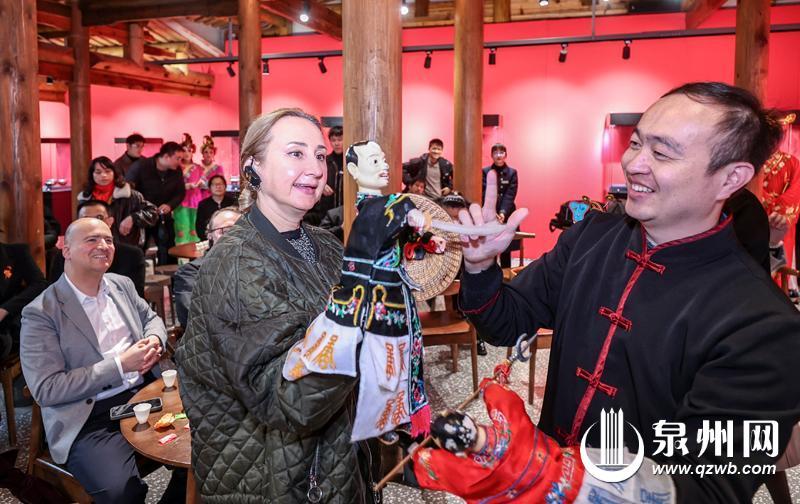 2月11日下午,明媚的阳光倾洒在泉州的大街小巷,外国总领事们正式开启了他们充满期待的泉州初印象之旅——参观泉州非物质文化遗产馆。一踏入馆内,众人仿若步入一条时光回廊,厚重的历史气息裹挟着文化韵味扑面而来。馆内,琳琅满目的非遗展品有序陈列,提线木偶栩栩如生,闽南金苍绣精美的针法巧夺天工,这些非遗精品让总领事们眼前一亮。他们忍不住走上前,向技艺精湛的艺人们学习木偶操作,感受其中的奇妙乐趣。“我们参观的这座非遗馆,实在是趣味横生。在馆内,我们亲身体验了七种不同非遗项目,每一项都独具魅力。”保加利亚驻上海总领事夫人斯维特拉·斯帕索娃不禁赞叹道。