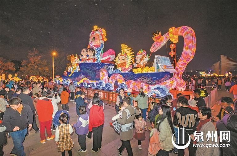 泉州网2月14日讯(融媒体记者 黄枫 陈嘉欣 陈起拓 文/图)东风夜放花千树,火树银花不夜天。元宵佳节,观赏花灯已经成为市民群众的娱乐大餐。在泉州台商投资区海丝艺术公园举行的“梦幻滨海 活力绽放”蛇序呈祥元宵灯会,自10日亮灯后,吸引不少市民群众和游客前来观赏花灯,现场人潮涌动,一片欢声笑语。据统计,截至13日,灯会共吸引超20万人前来观赏。花灯的独特造型及灯会的热闹现场,也再次登上元宵节当天的央视《新闻联播》。