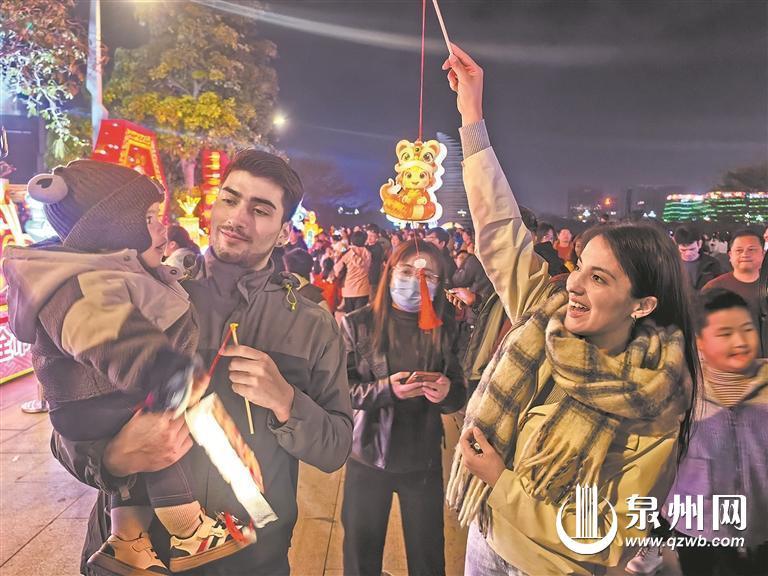 在熙熙攘攘的赏灯人群中,几位来自乌克兰和智利的游客格外引人注目。他们被眼前绚丽多姿的花灯深深吸引,穿梭于灯海之中,不时驻足拍照,记录下这难得的异国风情。“虽然在中国很多年了,但这是我们第一次来看花灯,我觉得这里的元宵活动规模大,形式独特,是在我们国家从未见过的,我认为这个节日很有趣,我的心情非常激动,因为我所看到的这一切对我来说太神奇了,希望明年能带着家人和朋友一起来中国,亲身感受这里浓厚的节日氛围。”乌克兰游客Arina Sas—Gering说。