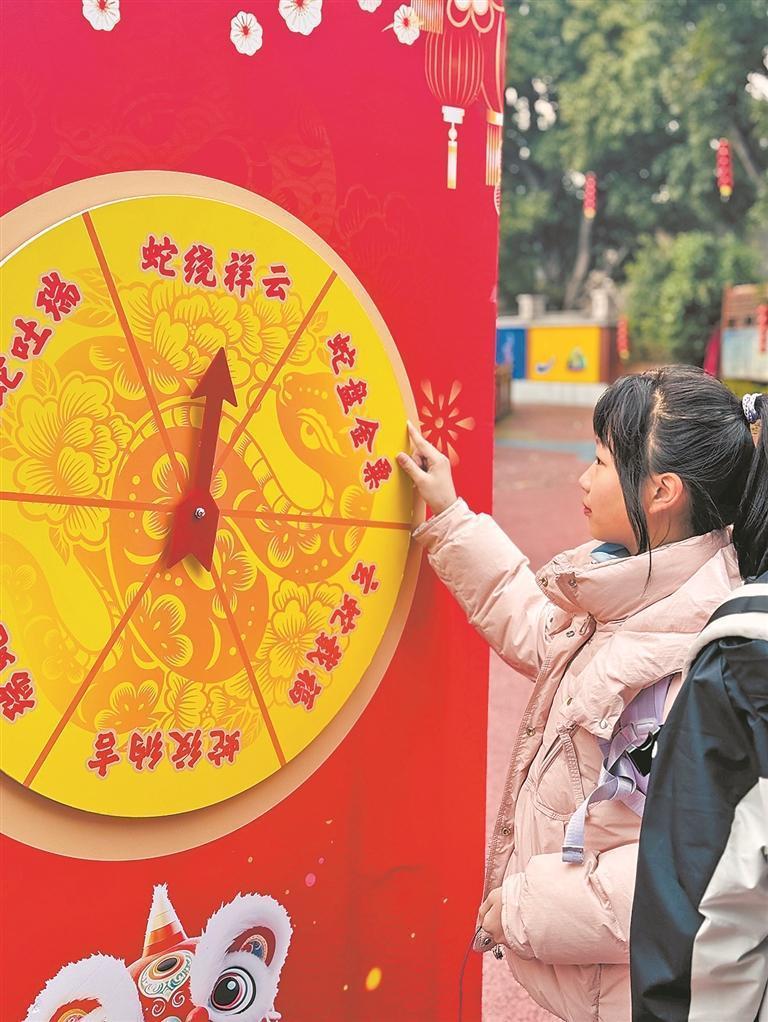 昨日上午,别开生面的“非遗小市集”环节,为泉州市实验小学的同学们带来了一场充满传统文化魅力的体验。通过参与“蛇来运转”转盘游戏,同学们幸运获得非遗小市集的入场券,开启了他们的文化探索之旅。小市集上,丰富多彩的非遗项目令人目不暇接:彩泥捏塑、剪纸艺术、团扇绘制、木偶头雕刻、拓印技艺等传统手工艺摊位前人头攒动,学生们纷纷驻足体验。随后,该校举行以“灵蛇启智 逐梦未来”为主题的春季开学典礼。典礼的尾声,各年段学生代表上台领取新年礼物——精美的书签,书签上印有欧阳钟灿院士的亲笔签名和殷切期许,希望同学们在科学探索的道路上勇攀高峰,在实验创新的征程中锐意进取。