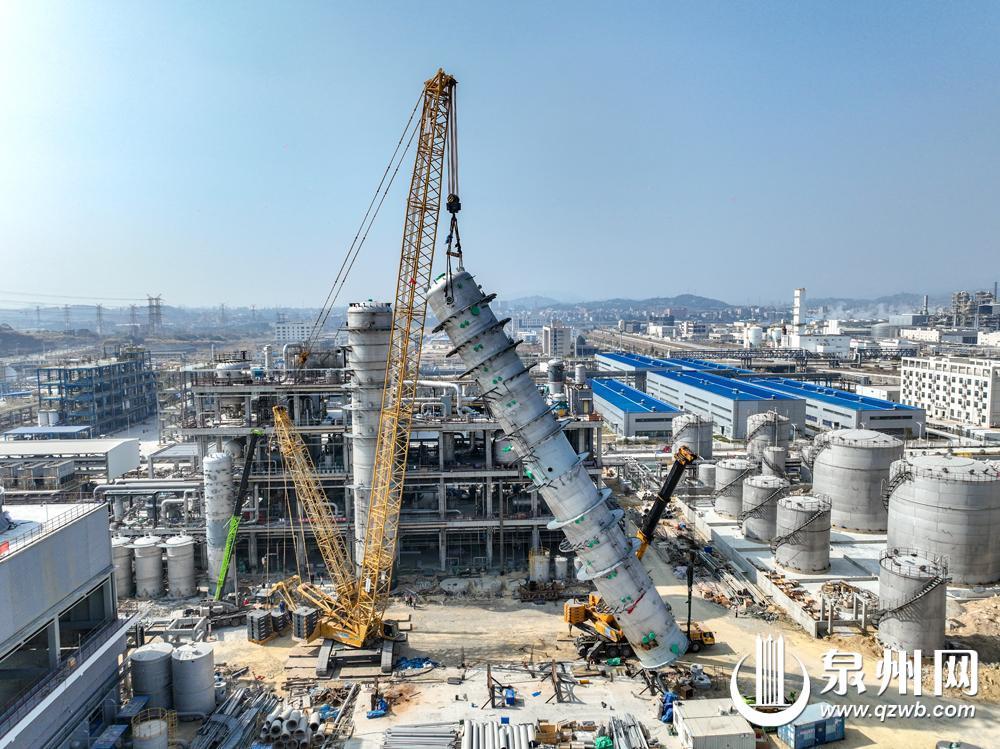 近日,福建凯美特气体有限公司30万吨/年过氧化氢项目氧化塔、萃取塔顺利完成吊装安装及设备调试,成为矗立在泉港石化工业园区的又一套标志塔。据悉,氧化塔高49米,重达258吨,萃取塔长43米,重达190吨,系该项目一期的“心脏设备”。项目整体建成投产后,预计可年产过氧化氢30万吨,将为华南地区提供过氧化氢产品,产生良好的经济效益和社会效益。