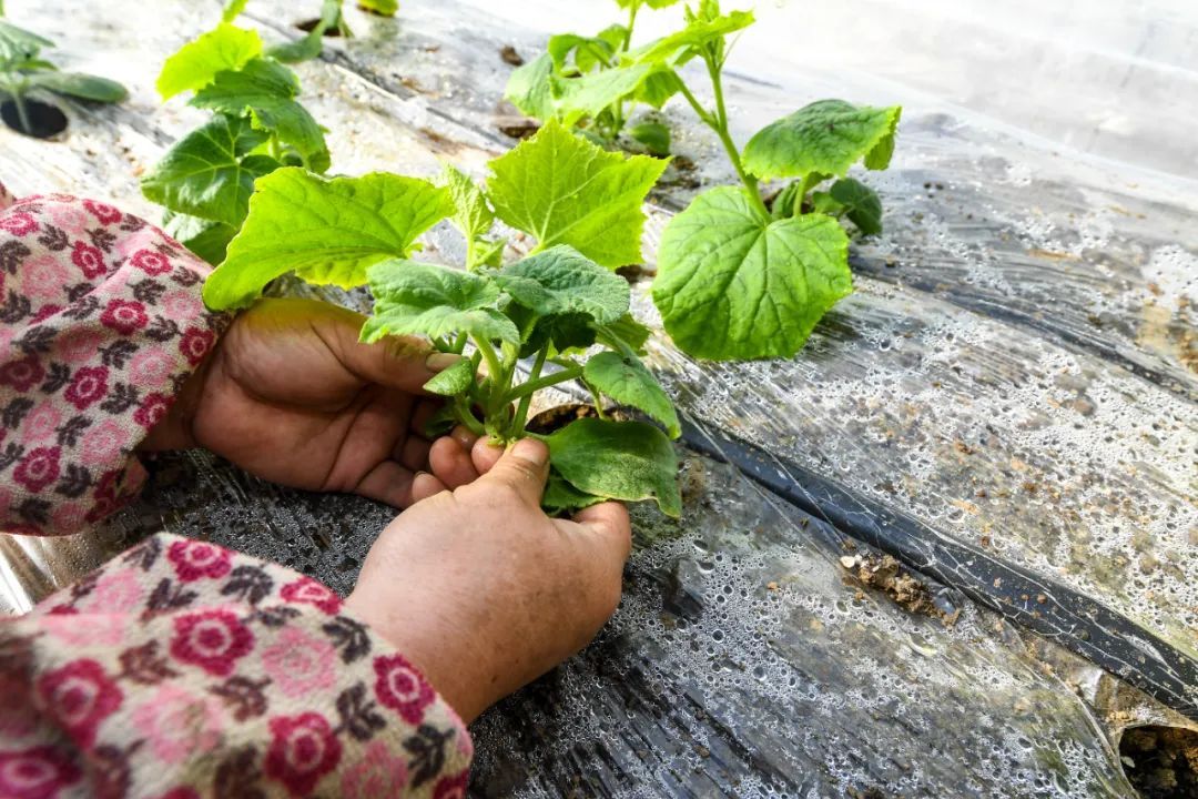 2月12日,在吉林市永吉县西阳镇兴隆川村大棚内,村民查看作物生长情况。新华社记者 张楠 摄