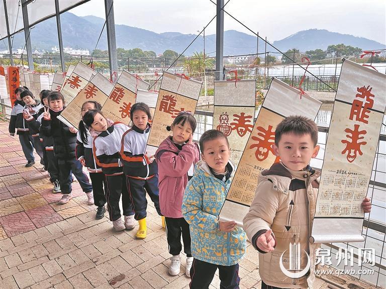 “孩子直到今年都还在念叨去年的农场非遗研学。”谈起非遗踏青,晋光小学南俊校区二年一班的一位学生家长不禁感叹道,边非遗研学边踏青体验农事,对孩子们有着极大的吸引力。去年春天,学生家长们根据班主任的指导组织研学。经过讨论,家长们联系到非遗剪纸手艺人、泉州首届剪纸艺术学会秘书长周婷婷,为孩子们开展剪纸研学,地点选在丰泽区的清源农场。孩子们在周婷婷的指导下,剪下“春”字、“龙”字,写下春联,在大棚内悬挂。随后还到农田里体验采摘蔬菜、喂养鸡鸭,从中理解春天与农业的密切关系。