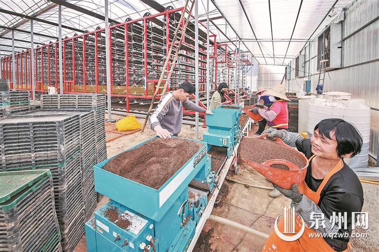眼下正值春耕育秧关键期,在南安水头镇顺和家庭农场的温室大棚内,村民们正忙着操作自动育秧机,为3000余亩农田培育优质秧苗。