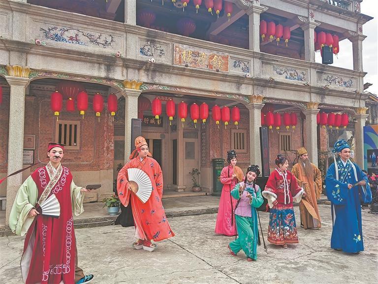 今年春节,由福建省梨园戏传承中心带来的梨园戏《陈三五娘》沉浸式互动演绎,从1月31日至2月12日,每天两场,在洛江区万安街道桥南古街充满古韵的余庆楼演出,来自全国各地的游客齐聚一堂,共同领略这场颇具泉州文化特色的盛宴。《陈三五娘》作为梨园戏经典剧目,讲述了泉州才子陈三与潮州佳人五娘在元宵节赏灯时邂逅,并历经波折最终结为连理的爱情故事。此次演出别出心裁,打破传统镜框式舞台束缚,采用了沉浸式互动演绎的方式,让观众亲身参与到剧情发展中,成为“戏中人”。观众在观看过程中处于动态,根据表演和剧情的推进,在“讲述人”的引领下,跟随演员穿梭于余庆楼内七个风格各异的表演空间,身临其境地感受《陈三五娘》浪漫的爱情之旅。