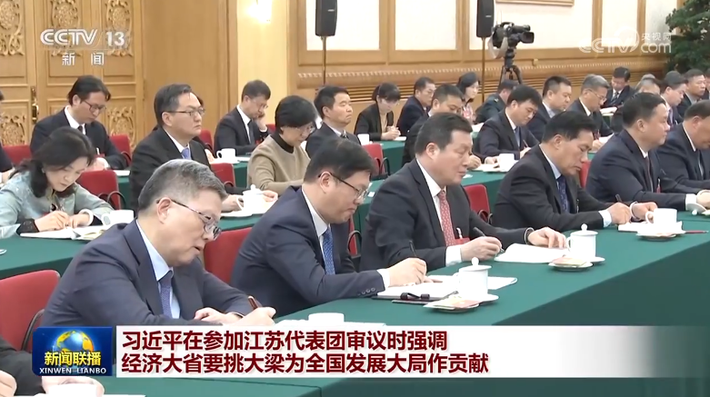 中共中央总书记、国家主席、中央军委主席习近平5日下午在参加他所在的十四届全国人大三次会议江苏代表团审议时强调,圆满实现“十四五”发展目标,经济大省要挑大梁。江苏要把握好挑大梁的着力点,在推动科技创新和产业创新融合上打头阵,在推进深层次改革和高水平开放上勇争先,在落实国家重大发展战略上走在前,在促进全体人民共同富裕上作示范。