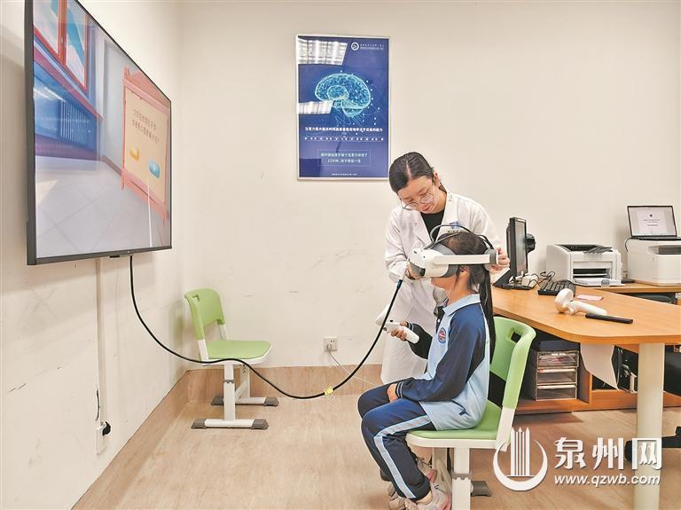 在泉州市第一医院城东院区学习困难门诊,一名小朋友在医生的指导下戴上白色“眼罩”,手持手柄,在显示器的语音提示下,一次又一次按下手柄按键。没过多久,一份《注意力峰值训练测试报告》就交到了家长手上……去年年底,该院在全省开先河,打造人工智能辅助诊断的“学习困难门诊”,只需短短12分钟,AI就能根据采集到的个人原始数据,与大数据库里的同年龄、同性别数据进行对比,通过人工智能运算后获得一份个人标准的可视化报告。