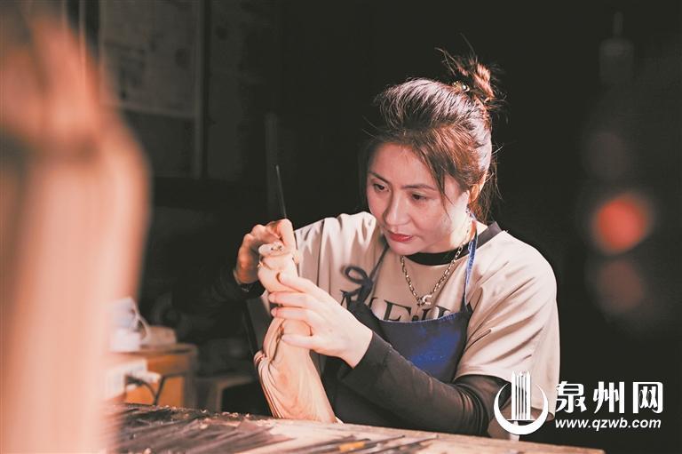 张红萍将非遗传承视为己任。她成立泉州市木雕艺术研究院,希望汇聚工艺美术大师与非遗传承人交流共进;她主动融入“海丝”文化浪潮,以刀木为纸笔讲述泉州故事、中国故事。近日,张红萍获评2024年度全国三八红旗手。